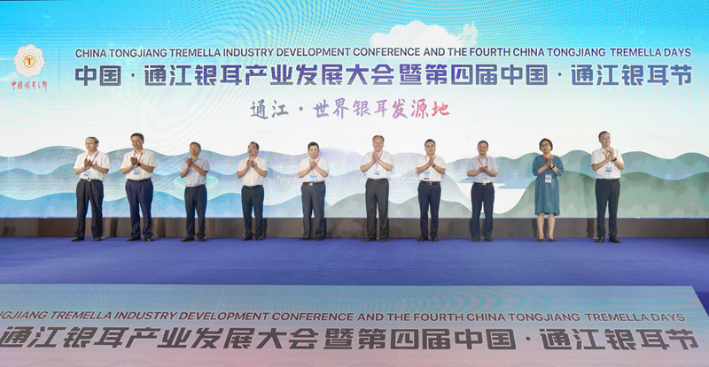 8月9日,中国·通江银耳产业发展大会暨第四届中国·通江银耳节在县城开幕。全国脱贫攻坚楷模、中国工程院院士、国际药用菌学会主席、吉林农业大学教授李玉出席并致辞,中国工程院院士、沈阳农业大学博士生导师、第十三届全国政协委员、首批全国高校黄大年式教师团队负责人、全国教书育人楷模李天来作主旨演讲。省农业农村厅党组副书记、省农科院党委书记、院长牟锦毅,省农业农村厅二级巡视员胡强,副市长何金虎出席开幕式。国际蘑菇学会主席格雷格·西蒙通过视频向大会致辞。中国食品土畜进出口商会副会长徐小虎,县委书记李玉甫,上海市农业科学院副院长、国家食用菌产业技术体系首席、世界食用菌生物学与产品学会主席谭琦,中国菌物学会理事长、中国科学院微生物研究所研究员郭良栋分别致辞。县委副书记、县长谭青松主持开幕式。县人大常委会主任吴天泉、县政协主席王茂生、县委副书记刘小龙出席开幕式。