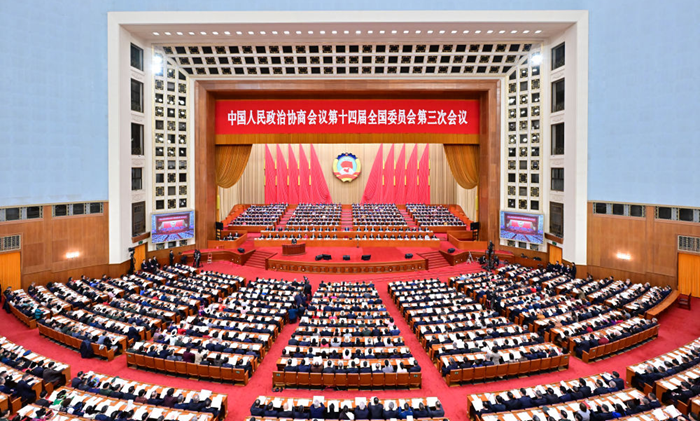 大会首先审议通过了政协第十四届全国委员会第三次会议议程。