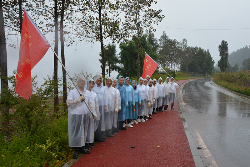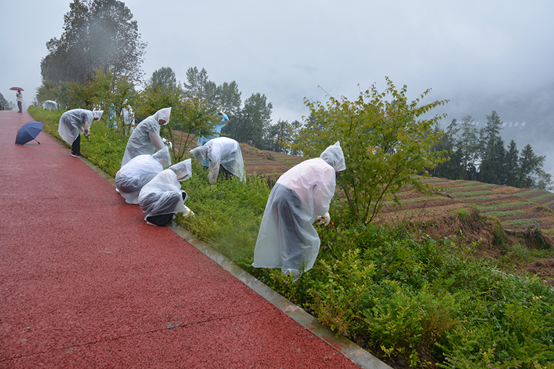 尽管天下阵雨,机关党员干部穿着雨衣,一头扎进责任区域,不停地挥舞着手中的镰刀,认真的清理公路两旁绿化带中的杂草,用实际行动美化陵园环境,缅怀革命先烈。